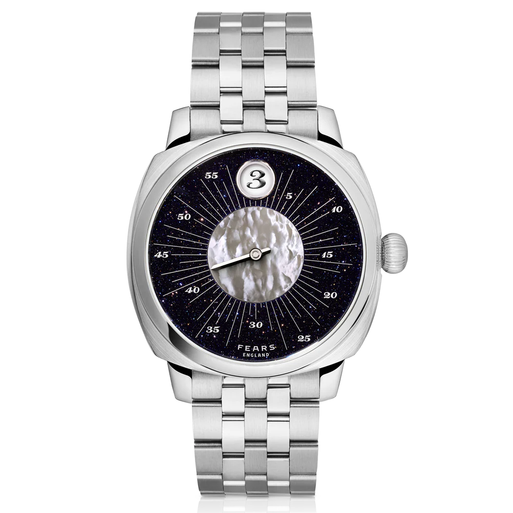 “The Celestial is a clinical strike into ‘British Materialism.’ While legacy houses hold the Sovereign title for jump hour complications, Fears bypasses the ‘Complication Tax’ by pairing a customized Swiss module with an Aventurine and Mother of Pearl composite. We are securing a terminal 1-of-75 ingress that captures unrepeatable artisanal depth.”